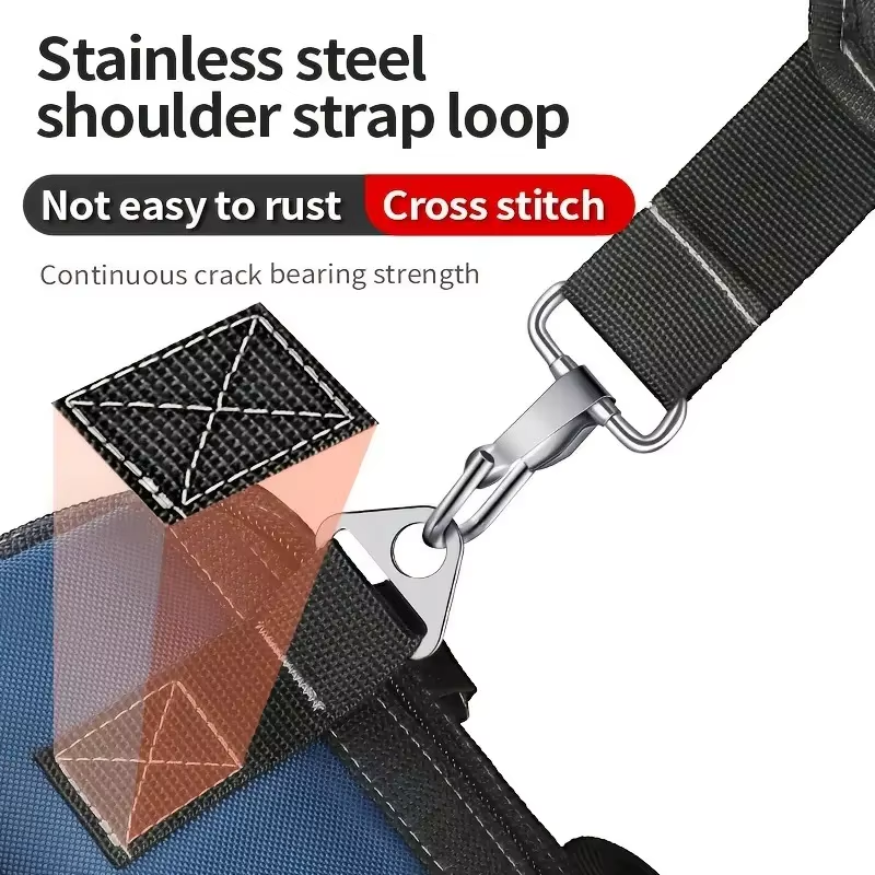 Equipped with a durable reinforced plastic handle, plus rust-resistant stainless steel strap loops with cross-stitch reinforcement for enhanced load-bearing capacity.