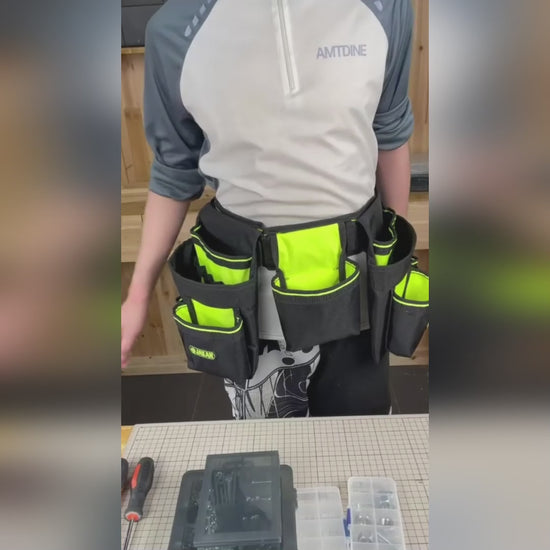 Wear the adjustable belt around your waist and organize your tools in the multiple pouches, loops, and magnetic holder. The belt keeps tools securely in place while you move freely on the job site.